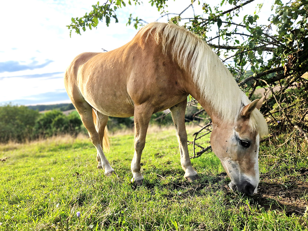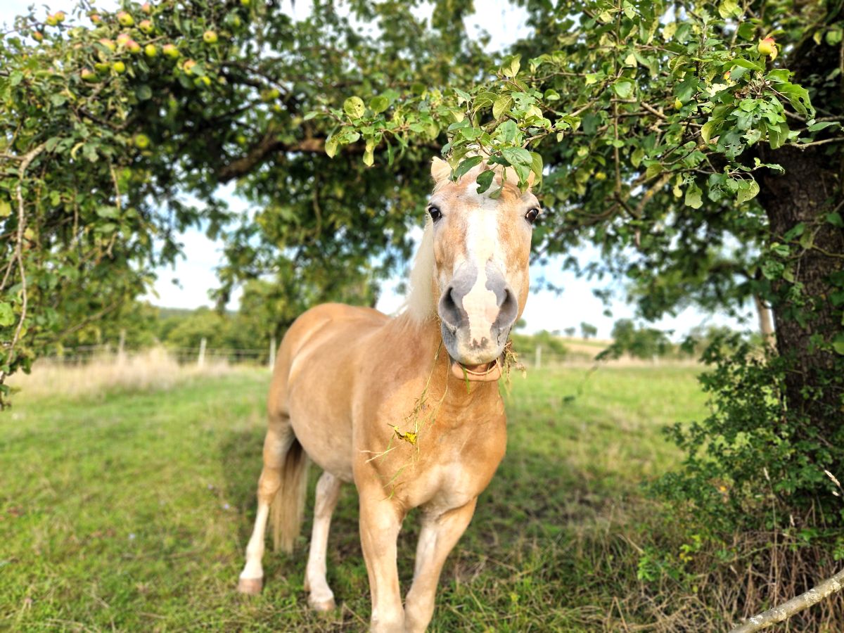 Trotz ihrer Sanftmut bringt sie das volle Haflinger‑Paket mit: Sturheit, unstillbaren Appetit und den festen Glauben, dass ein Zaun mehr ein höflicher Vorschlag ist, hier zu bleiben als ein ernst gemeintes Hindernis. Beim Futter ist von ihrer Zurückhaltung nichts zu spüren, besonders wenn es eigentlich für jemand anderen gedacht war.